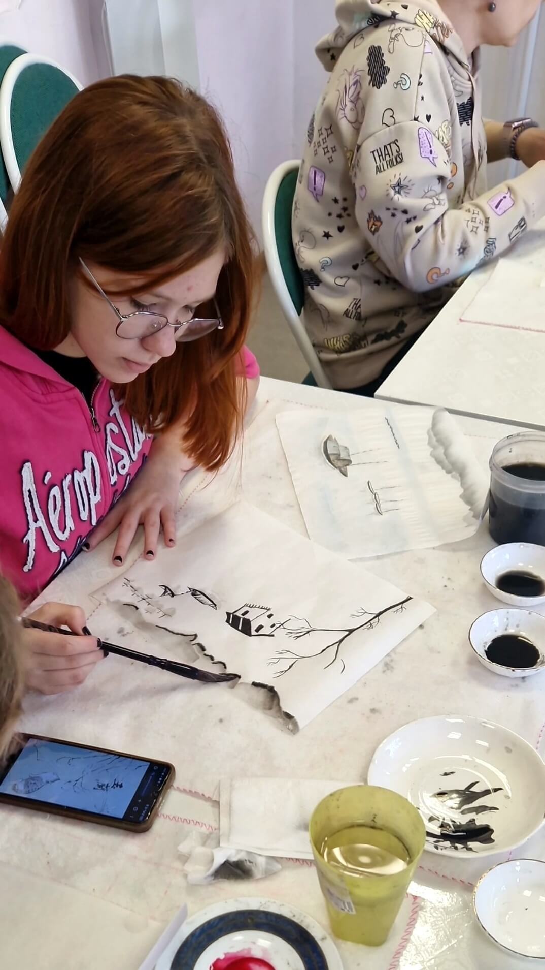 ☀️ В общеобразовательной школе №609 г. Зеленоград стартовали занятия по рисованию "Восточная живопись тушью" для 2-7 классов☀️